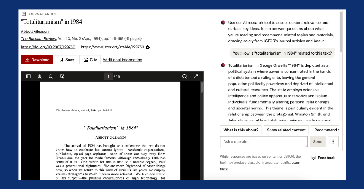 Your time constraints are our concern: JSTOR’s AI research tool maximizes efficiency